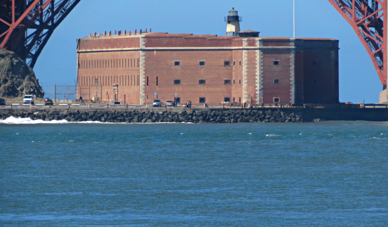 A cable car route passes by a couple of blocks east of the bottom of the hill. We had planned to hop on it, but the route ends two blocks away from Lombard, about two blocks short of Fisherman’s Wharf, so we walked down. At the end of the line, the car is driven onto a turntable. A worker pushes a lever allowing the car to be sided onto a short stretch of track, and then one or more men manually push the car around to face the other way for its trip back into town